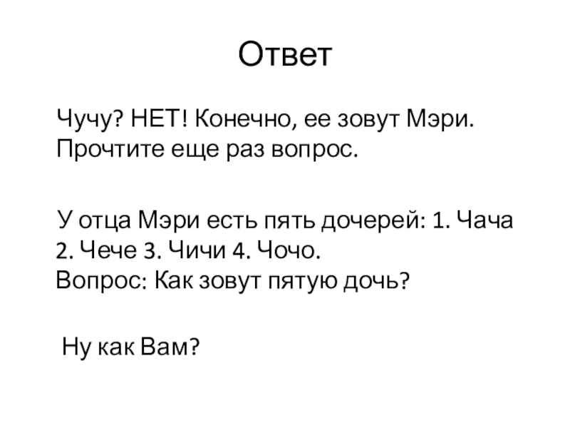 Чучу? НЕТ! Конечно, ее зовут Мэри. Прочтите еще раз