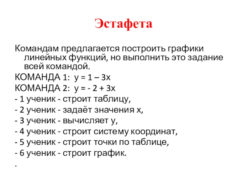 Командам предлагается построить графики линейных функций, но выполнить это задание всей