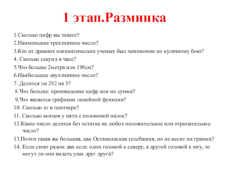 12.Какое число делится без остатка на любое положительное или отрицательное число?