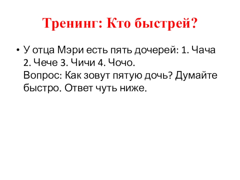 Вопрос: Как зовут пятую дочь? Думайте быстро. Ответ чуть ниже.