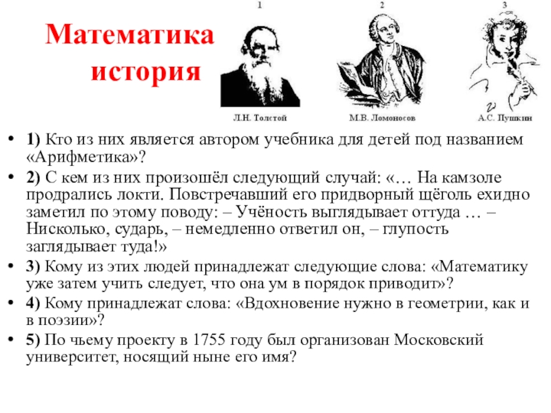 Слайд 121) Кто из них является автором учебника для детей под названием «Арифметика»?