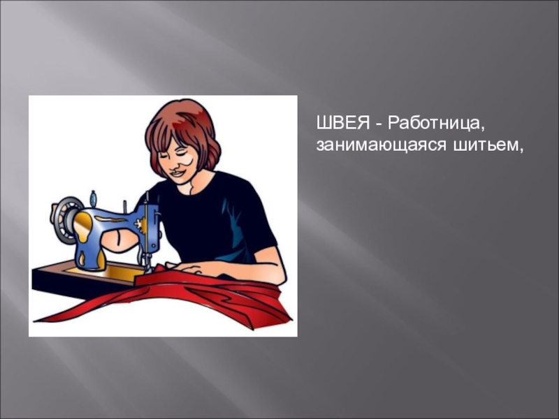Слайд 9ШВЕЯ - Работница, занимающаяся шитьем,