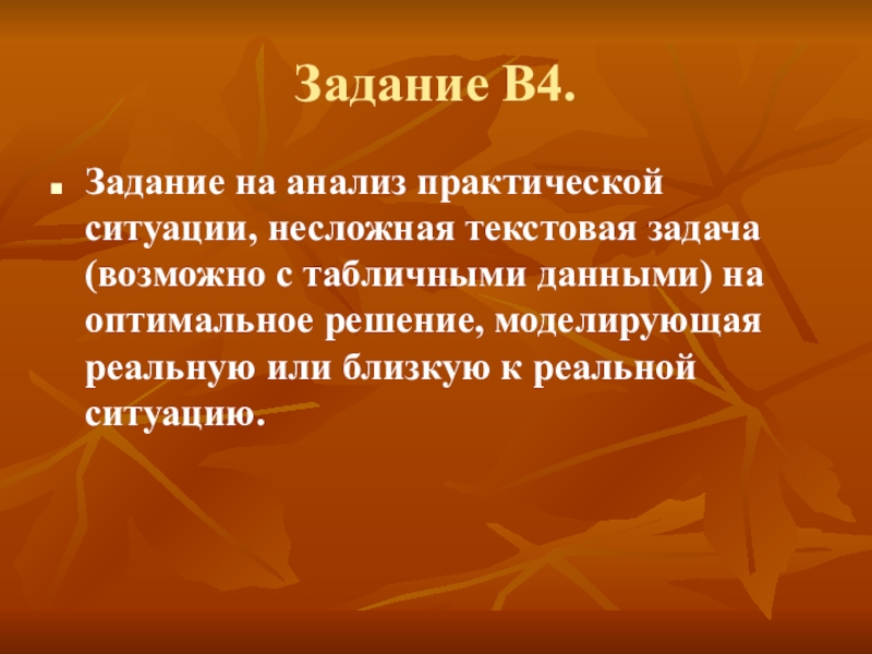 Задание на анализ практической ситуации, несложная текстовая задача (возможно с