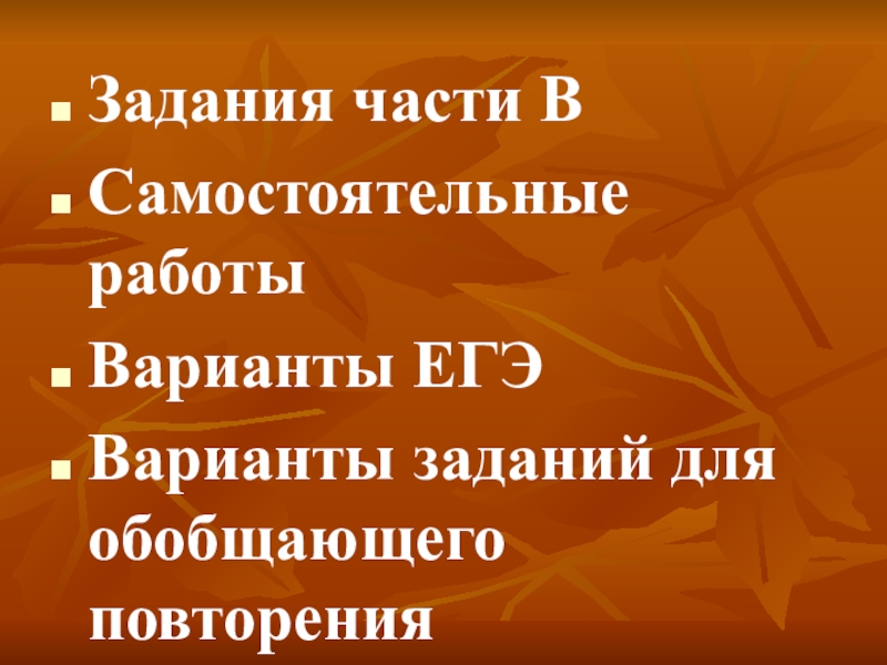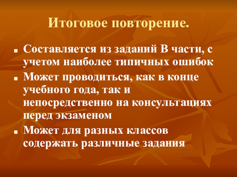 Составляется из заданий В части, с учетом наиболее типичных ошибок