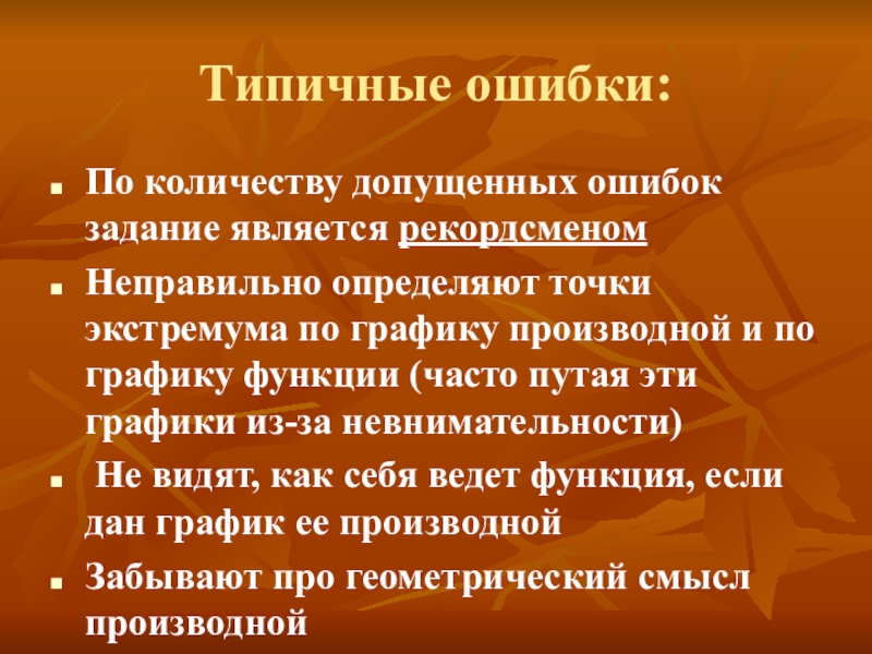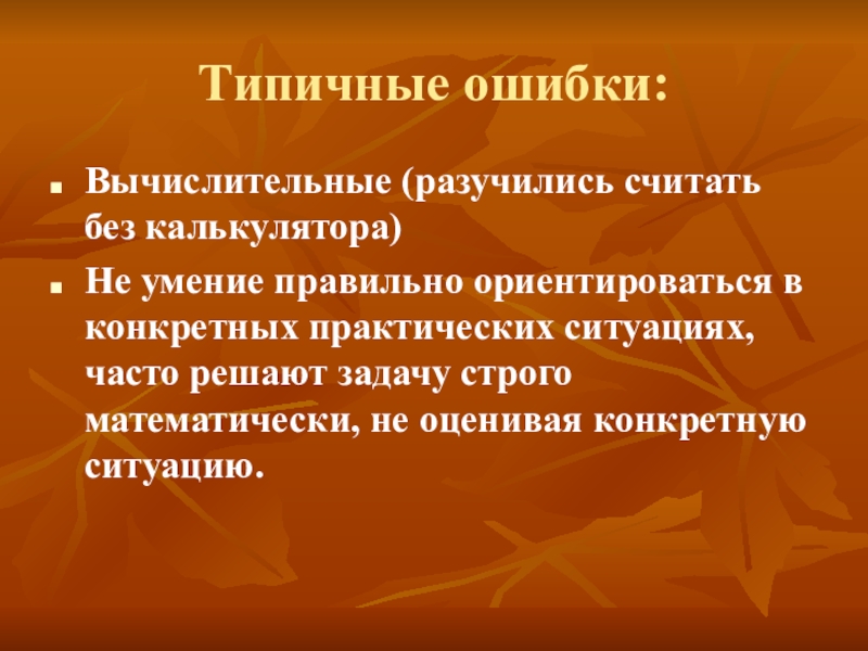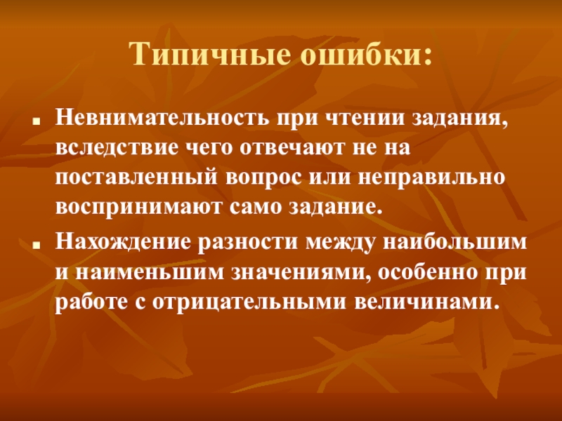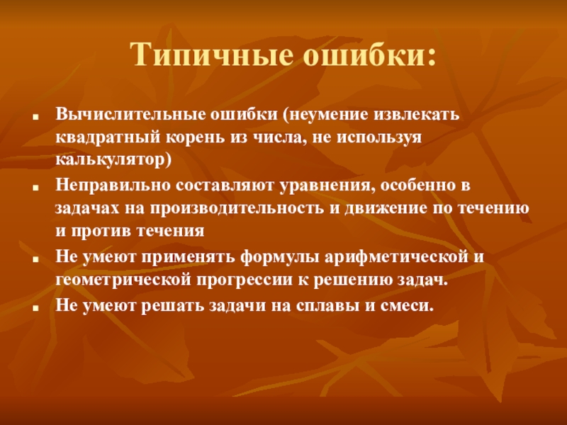 В основном это либо вычислительные ошибки, либо ошибки из-за невнимательности