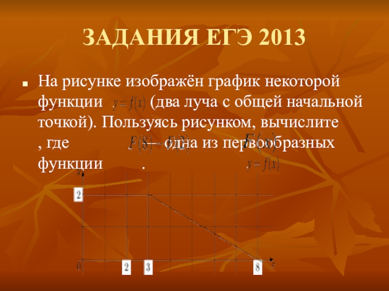 (два луча с общей начальной точкой). Пользуясь рисунком, вычислите , где — одна из первообразных функции .