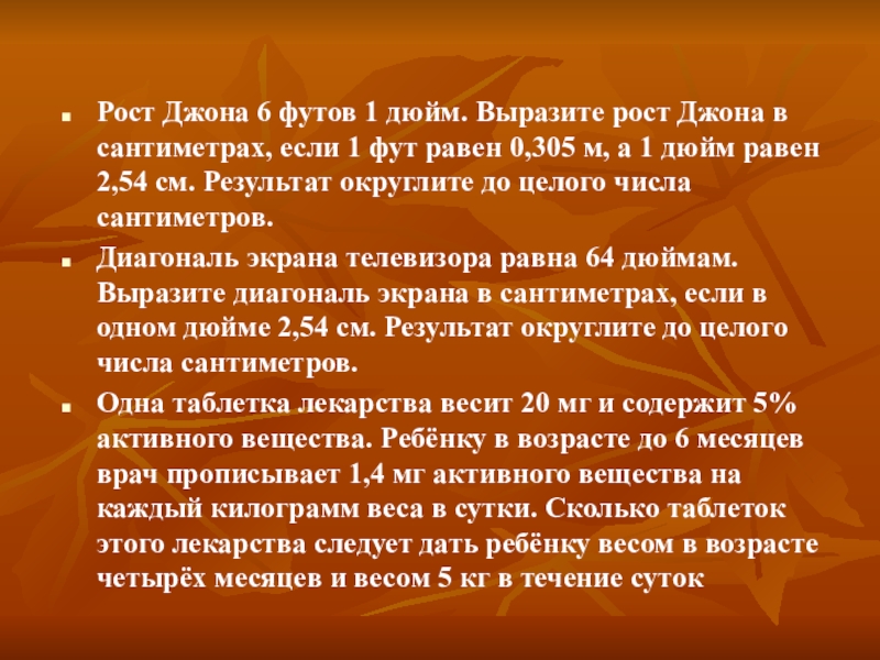 Слайд 12Рост Джона 6 футов 1 дюйм. Выразите рост Джона в сантиметрах,