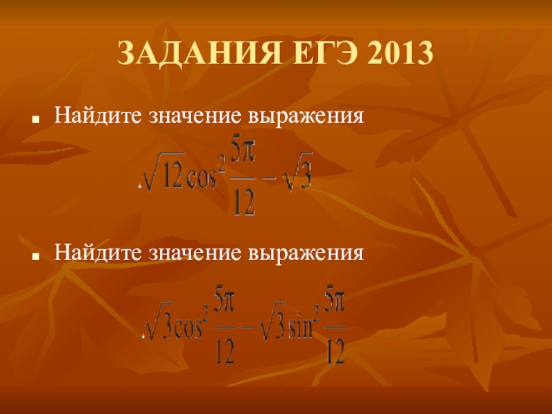 Слайд 18ЗАДАНИЯ ЕГЭ 2013