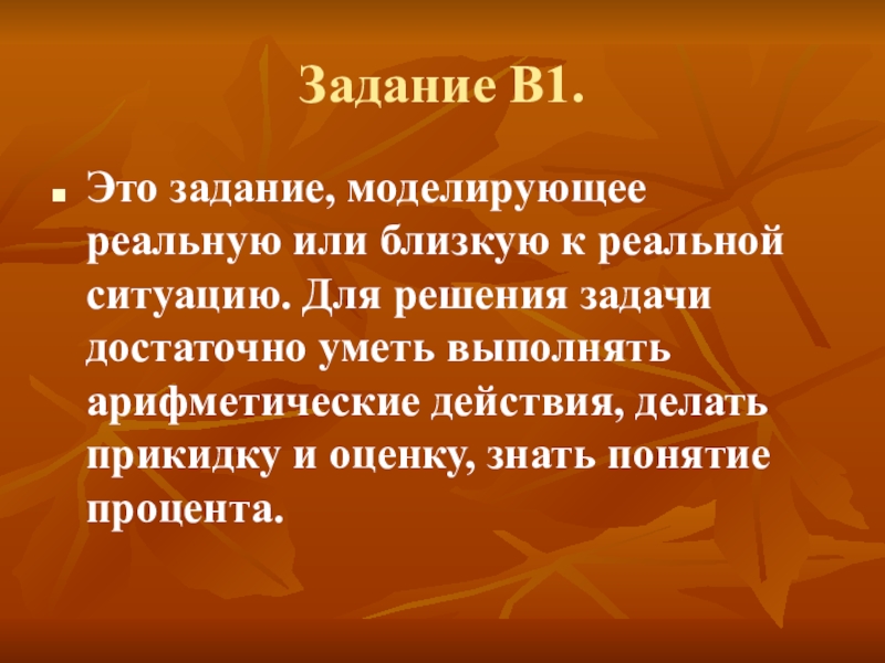 решения задачи достаточно уметь выполнять арифметические действия, делать прикидку и оценку, знать понятие процента.