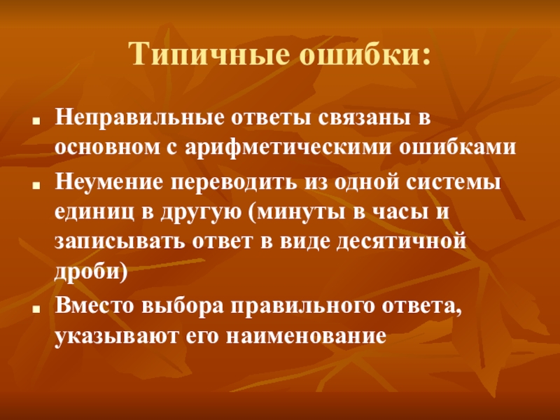 Неправильные ответы связаны в основном с арифметическими ошибками