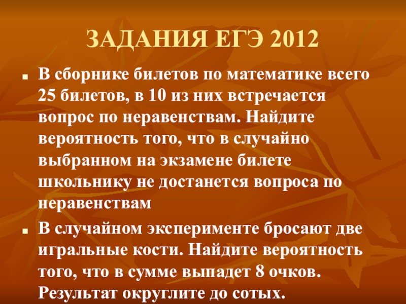 Слайд 44ЗАДАНИЯ ЕГЭ 2012