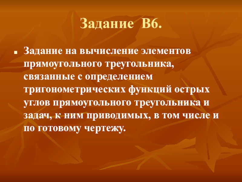 Задание на вычисления площади треугольника, четырехугольника, круга и его частей,