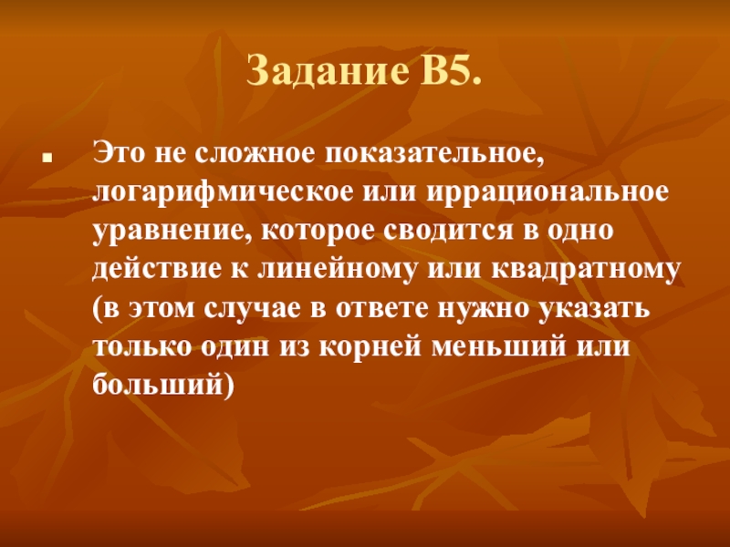 в одно действие к линейному или квадратному (в этом случае в ответе нужно указать только один из корней меньший или больший)