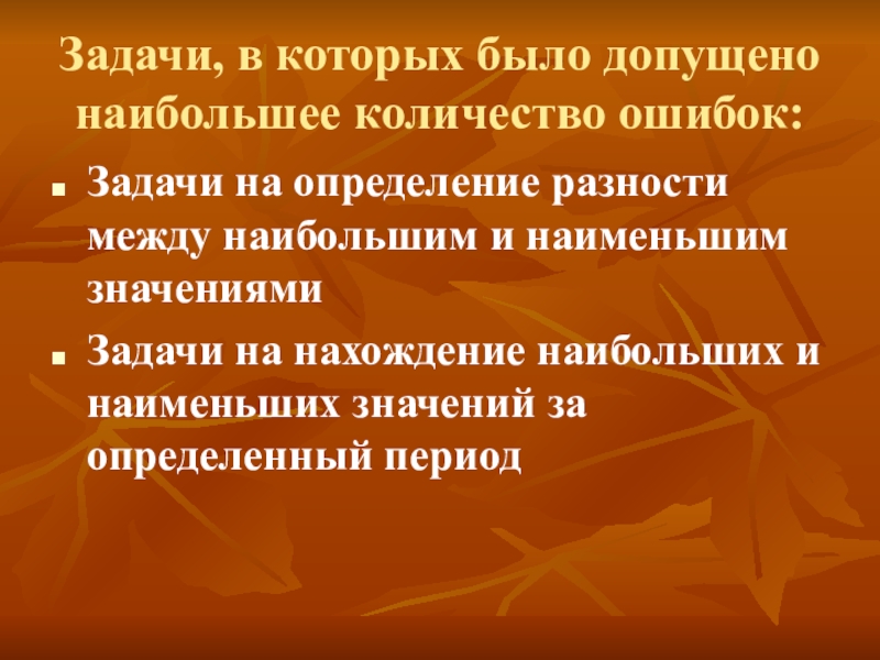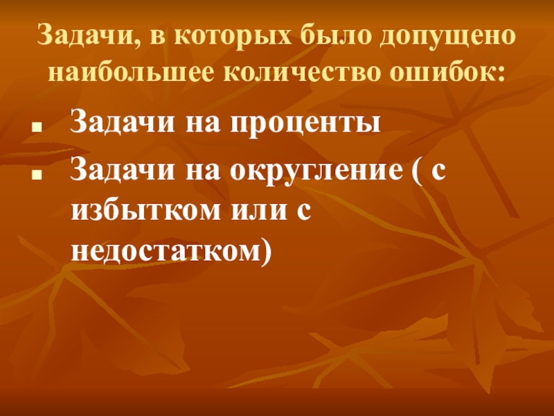 Слайд 10Задачи, в которых было допущено наибольшее количество ошибок: