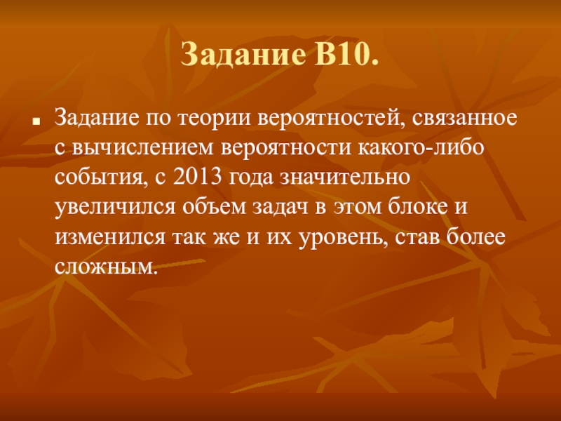Задание по теории вероятностей, связанное с вычислением вероятности какого-либо события,