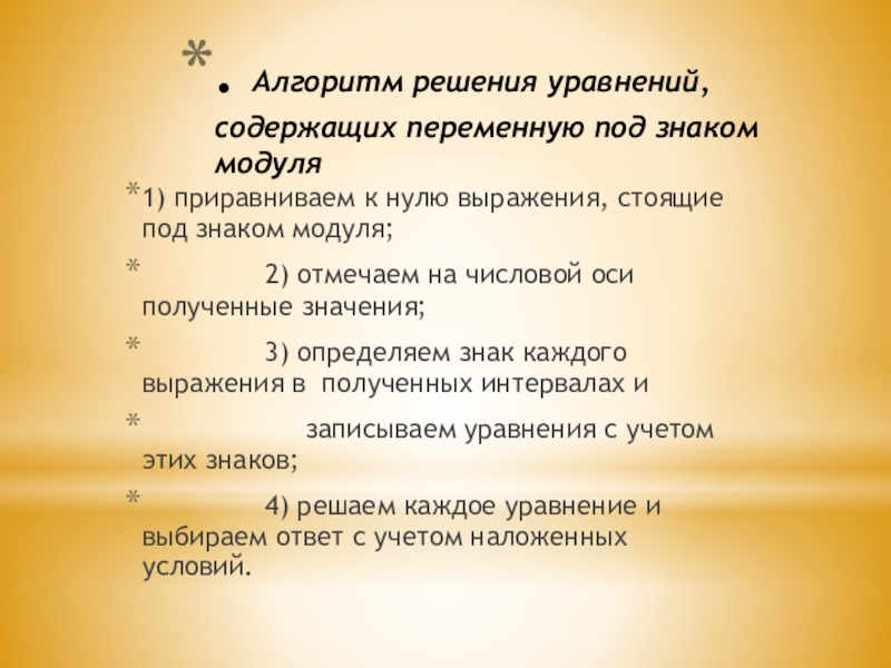Слайд 4. Алгоритм решения уравнений, содержащих переменную под знаком модуля