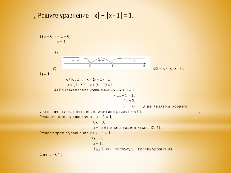 . Алгоритм решения уравнений, содержащих переменную под знаком модуля1) приравниваем к нулю выражения, стоящие под знаком модуля;