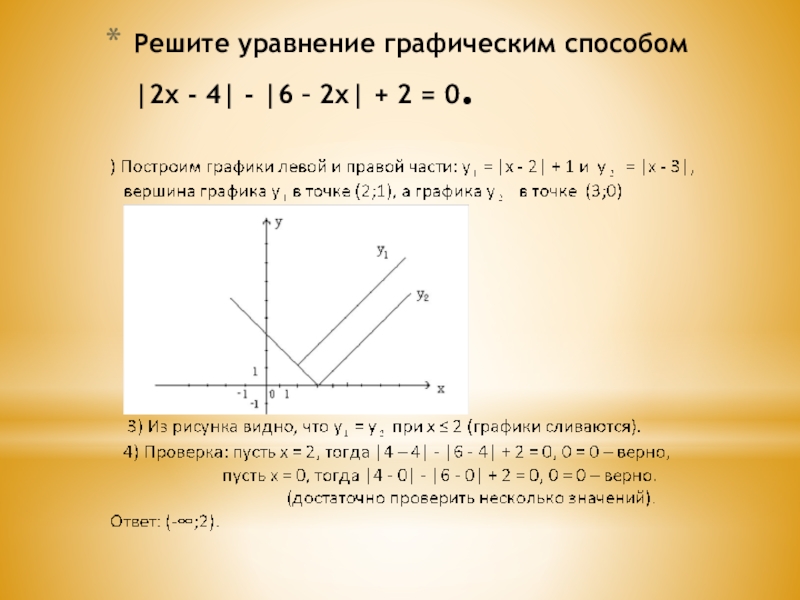 Слайд 7Решите уравнение графическим способом |2х - 4| - |6 –