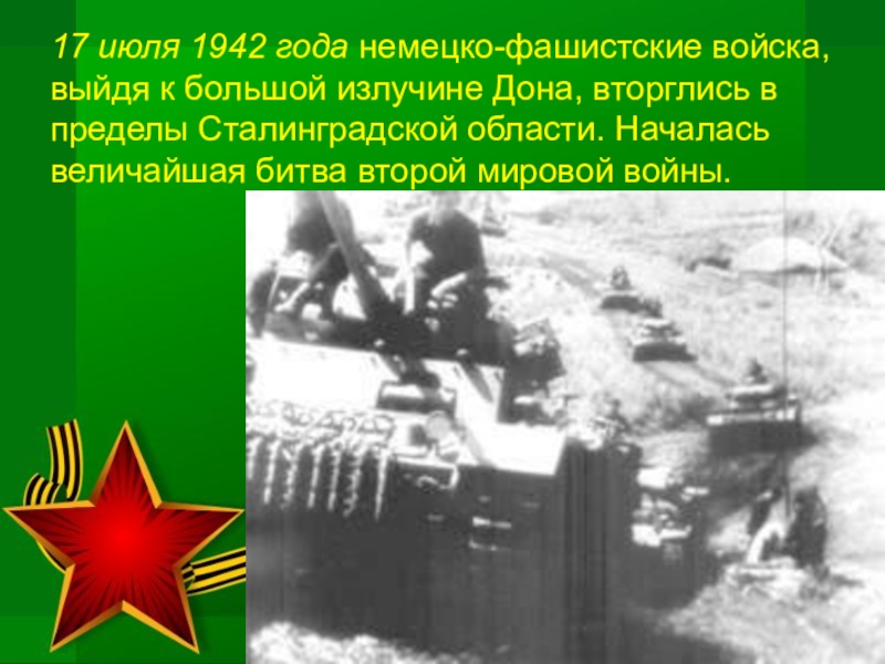 Слайд 817 июля 1942 года немецко-фашистские войска, выйдя к большой излучине Дона,