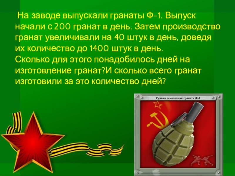 Слайд 19 На заводе выпускали гранаты Ф-1. Выпуск начали с 200 гранат