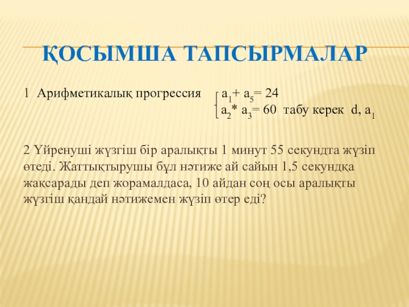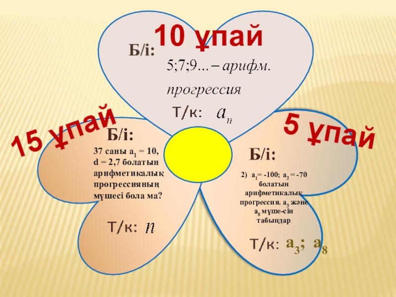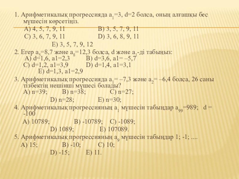 2) а1= -100; а2 = -70 болатын арифметикалық прогрессия. а3 және а8 мүше-сін табыңдар