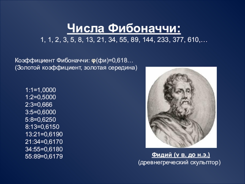 Коэффициент Фибоначчи: φ(фи)=0,618…