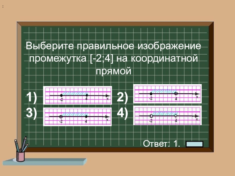 Выберите правильное изображение промежутка [-2;4] на координатной прямой