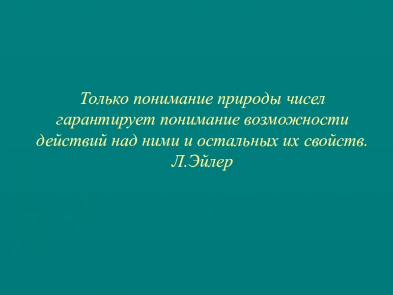 Только понимание природы чисел гарантирует понимание возможности действий над ними и остальных их свойств. Л.Эйлер