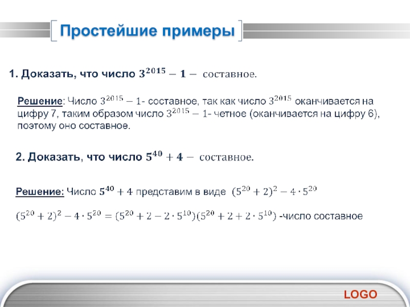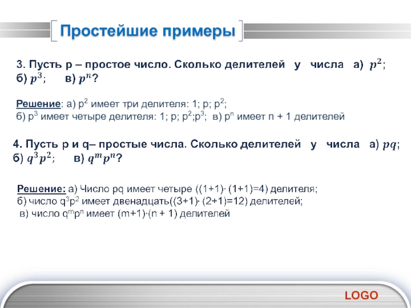 1. Любое, натуральное число а > 1 имеет хотя бы один простой делитель.