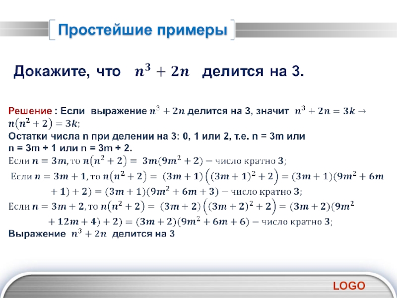 Пример: 48 ⋮ 3 и 13 N, то (48∙13) ⋮ 3.
