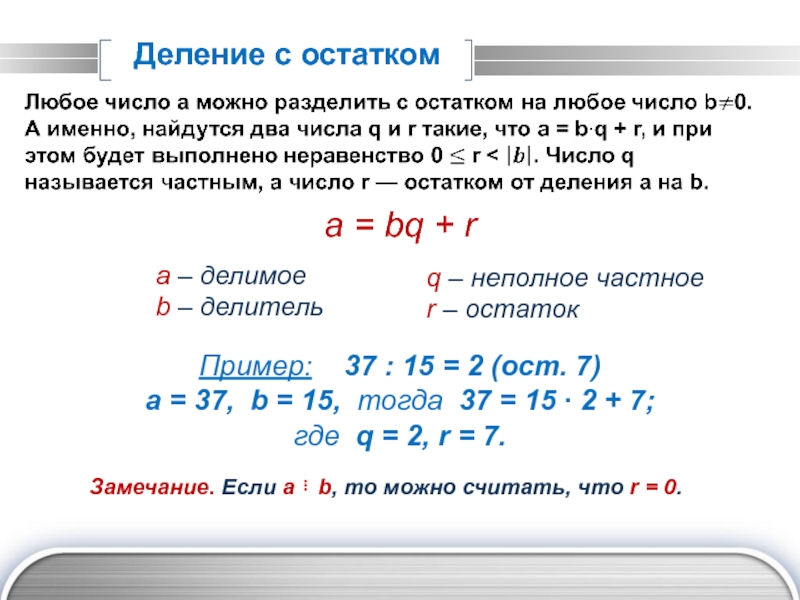 Замечание. Если а ⋮ b, то можно считать, что r = 0.