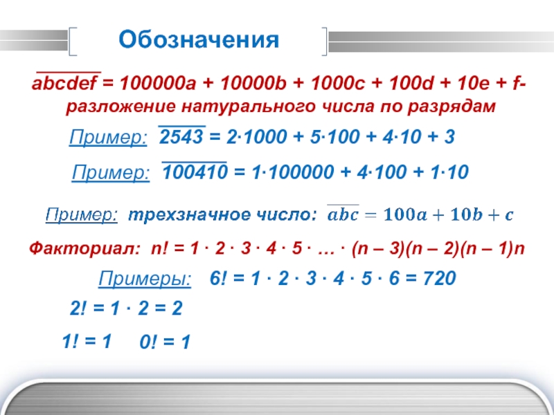 Примеры: 6! = 1 ∙ 2 ∙ 3 ∙ 4 ∙ 5 ∙ 6 = 720