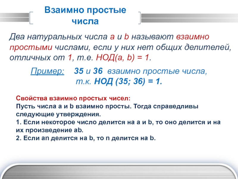 Пусть числа a и b взаимно просты. Тогда справедливы следующие утверждения.