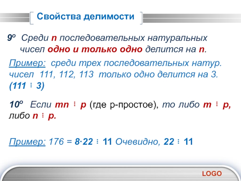 Пример: 176 = 8∙22 ⋮ 11 Очевидно, 22 ⋮ 11