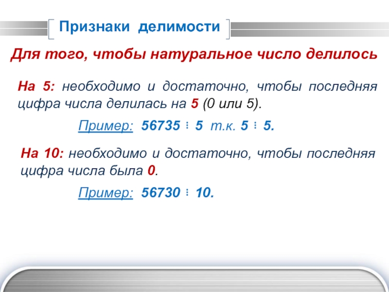 Пример: 56735 ⋮ 5 т.к. 5 ⋮ 5.