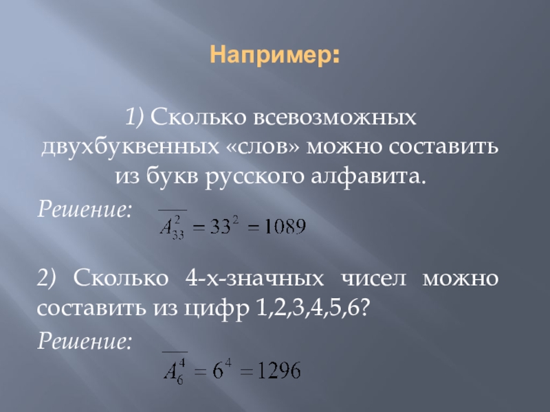 Например: Сколько всевозможных четырехзначных чисел можно составить из цифр 1,3,5,7.