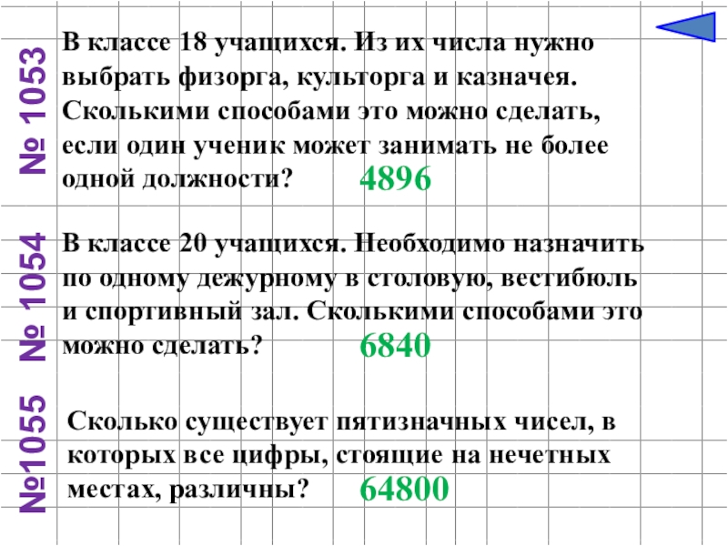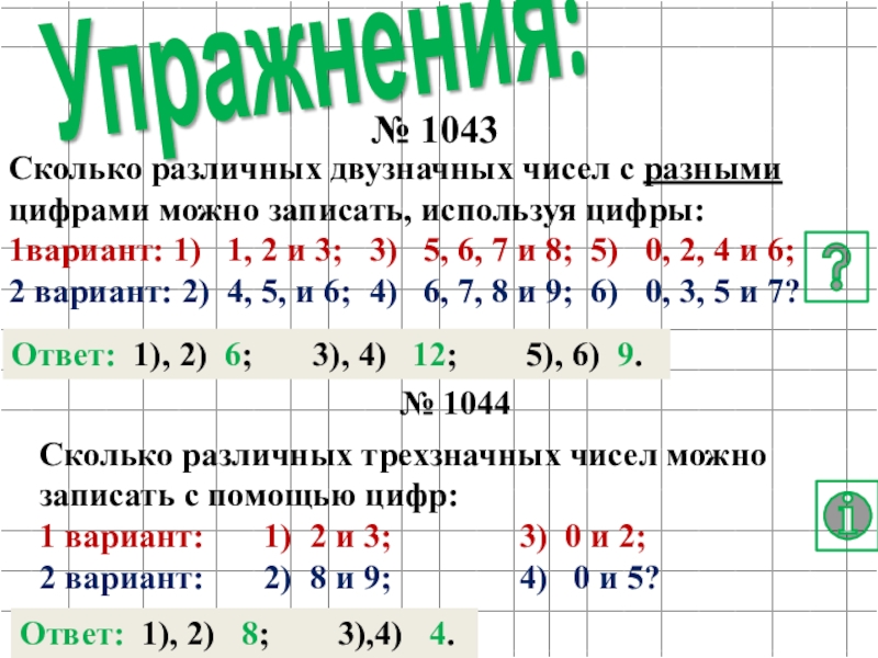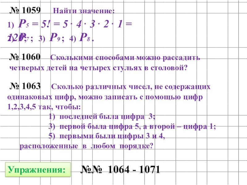 № 1063 Сколько различных чисел, не содержащих одинаковых цифр, можно записать с помощью цифр 1,2,3,4,5 так, чтобы:
