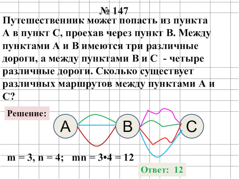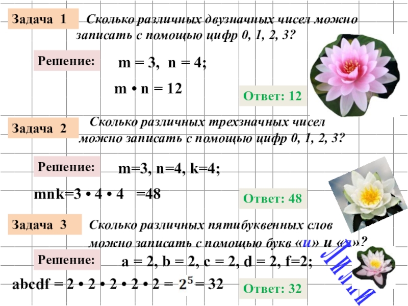2 способ – по правилу произведения: m = 4, n = 3; mn = 12