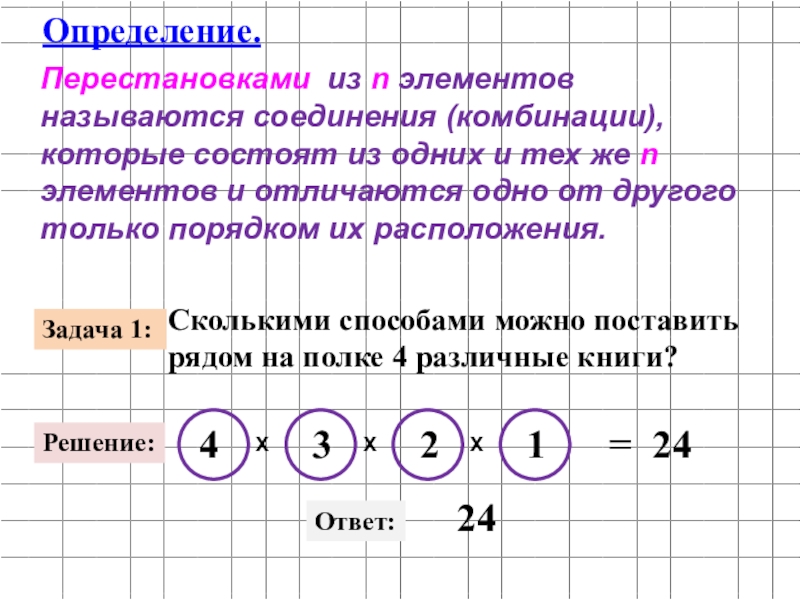 Сколькими способами можно поставить рядом на полке 4 различные книги?