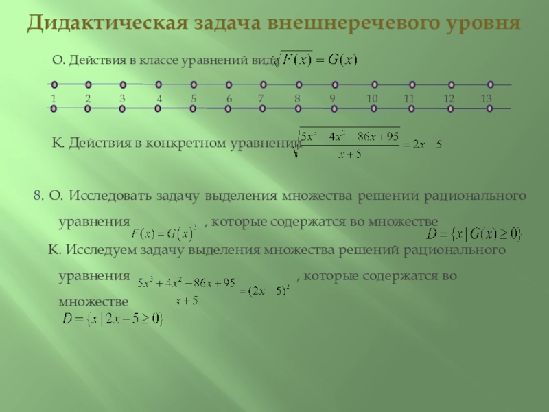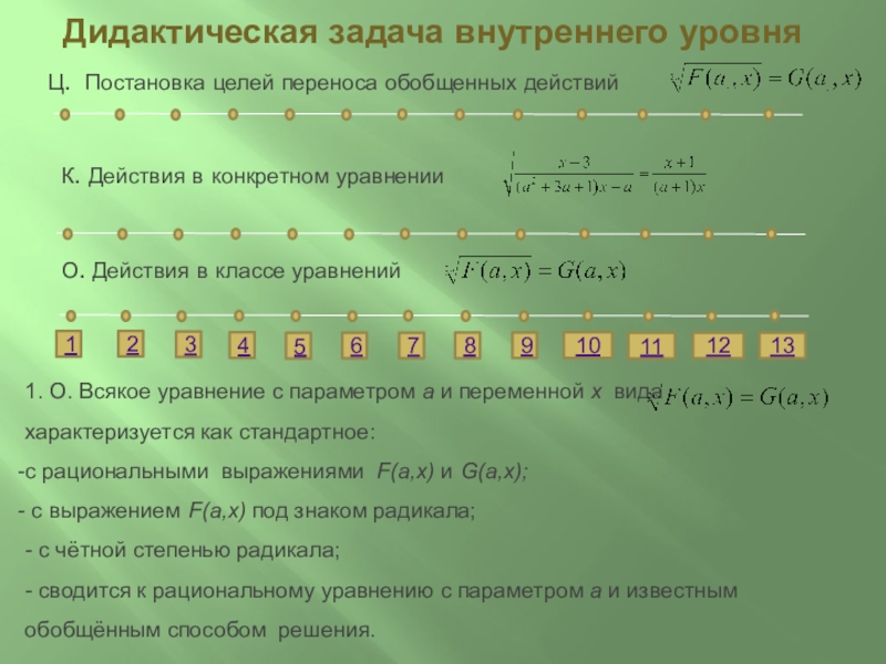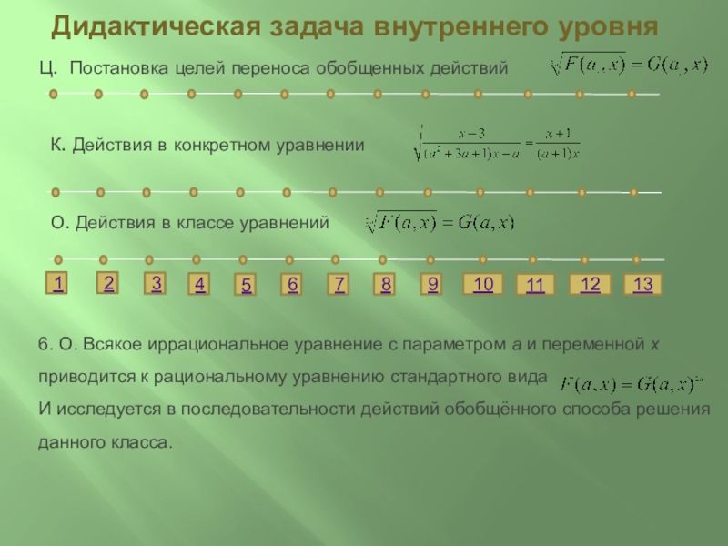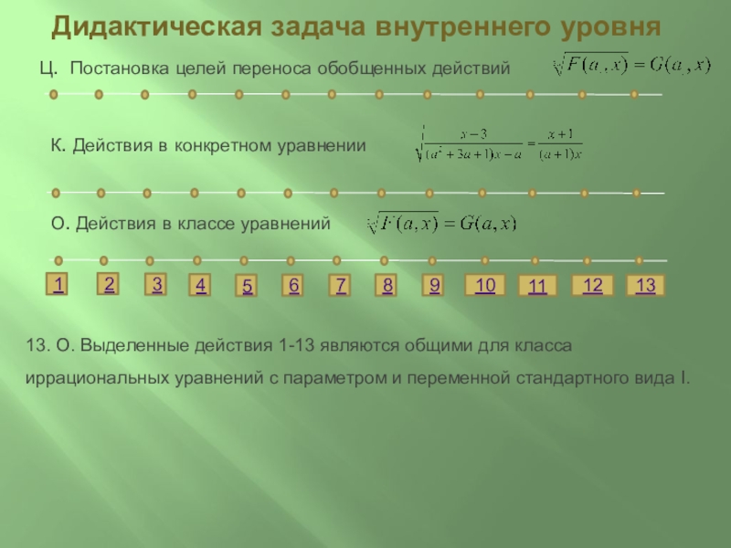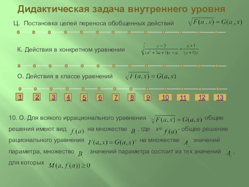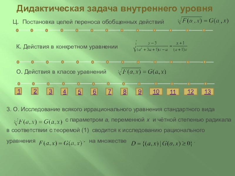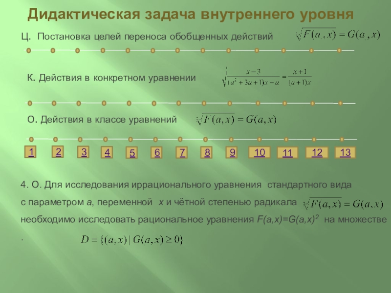 13. О. Выделенные действия 1-13 являются общими для класса иррациональных уравнений с параметром и переменной стандартного вида I.