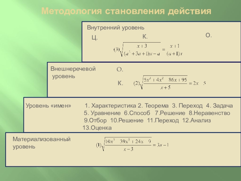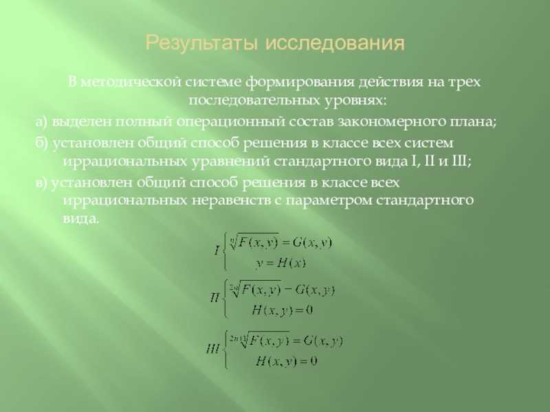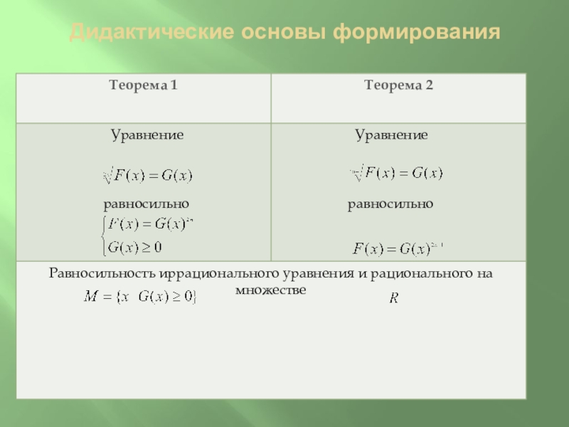 10. О. Для всякого иррационального уравнения общие решения имеют вид на множестве , где х= - общее решение рационального уравнения на множестве значений параметра, множество значений параметра состоит из тех значений , для которых .