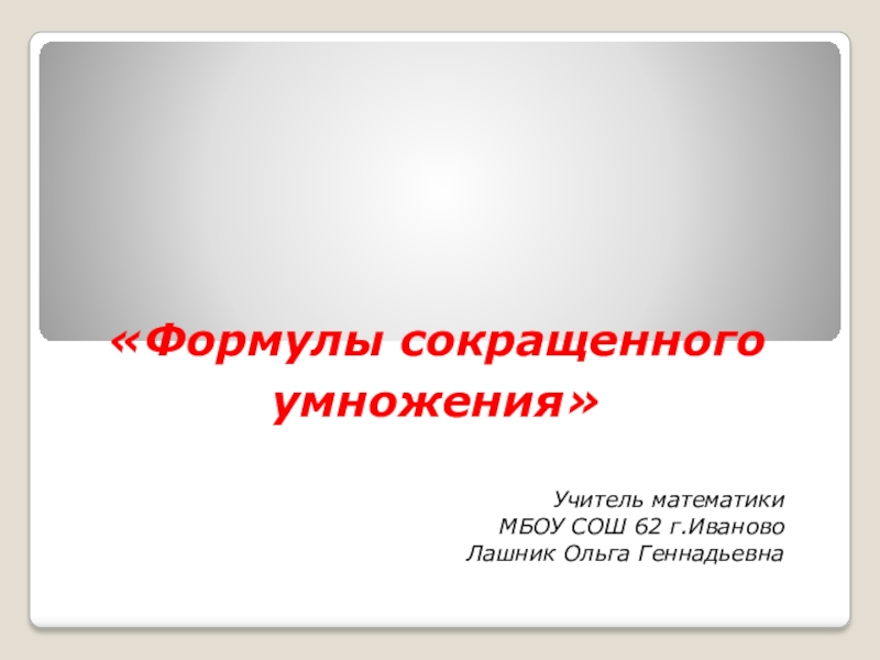 «Формулы сокращенного умножения»Учитель математикиМБОУ СОШ 62 г.ИвановоЛашник Ольга Геннадьевна