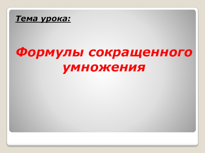 Презентация, доклад по математике на тему Формулы сокращенного умножения