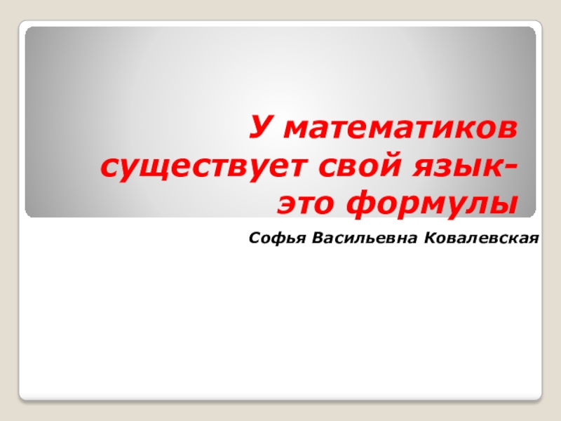 У математиков существует свой язык-это формулыСофья Васильевна Ковалевская