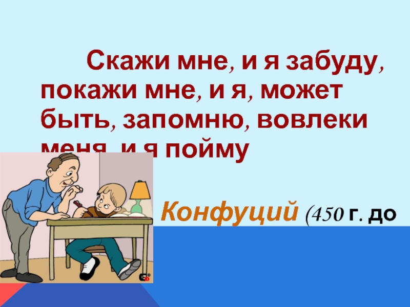 Скажи мне, и я забуду, покажи мне, и я, может быть, запомню, вовлеки меня, и я пойму Конфуций (450 г. до н.э.)