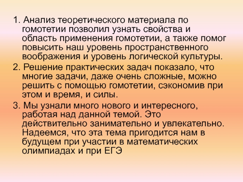 С помощью гомотетии можно находить отношение отрезков, площадей, объемов