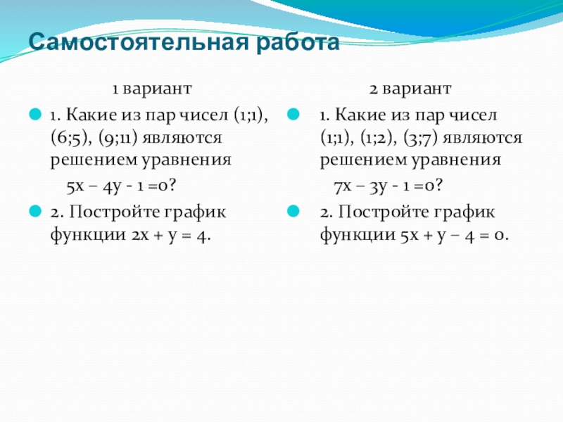 1. Какие из пар чисел (1;1), (1;2), (3;7) являются решением уравнения