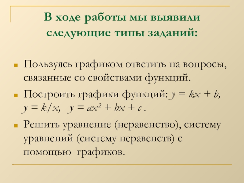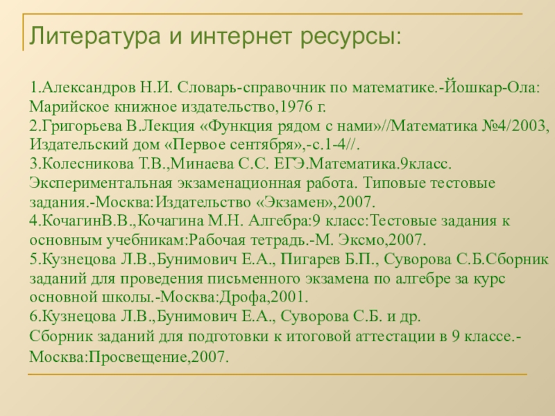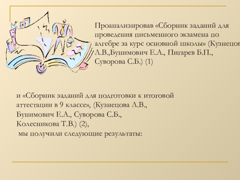 Проанализировав «Сборник заданий для проведения письменного экзамена по алгебре за курс основной школы» (Кузнецова Л.В.,Бунимович Е.А., Пигарев Б.П., Суворова С.Б.) (1)