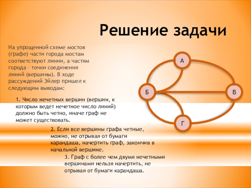 3. Граф с более чем двумя нечетными вершинами нельзя начертить, не отрывая от бумаги карандаша.