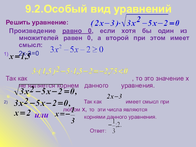 Очевидно, что левая часть уравнения не существует ни при одном значении неизвестного х. Уравнение не может иметь решений, так как левая часть не существует ни при одном значении неизвестного х.